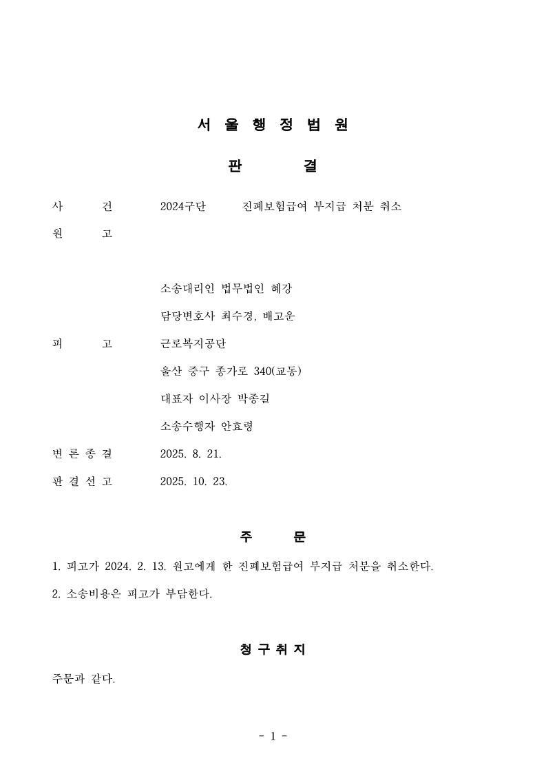[판결] 보험급여 부지급 처분 취소
